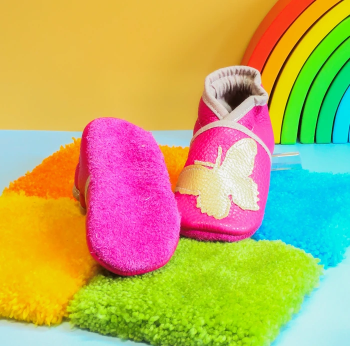 Chaussons cuir souple rose – Pâquerette & papillon 19/20