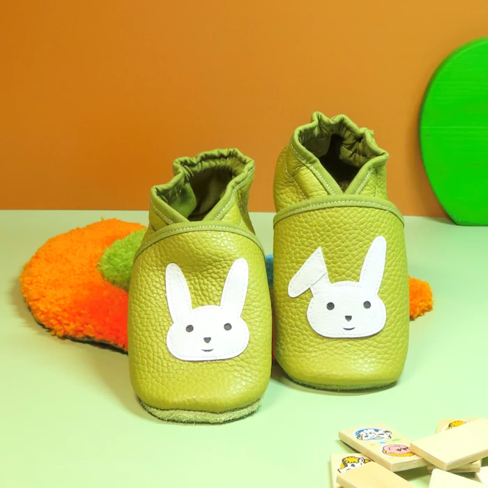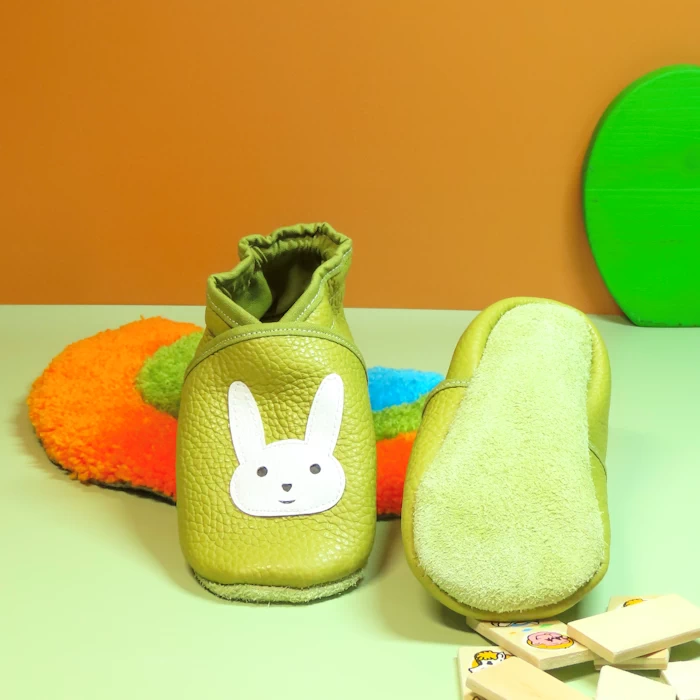 Chaussons souples en cuir vert – Lapin 23/24