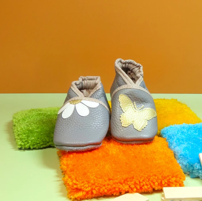Chaussons cuir souple – Papillon & Pâquerette